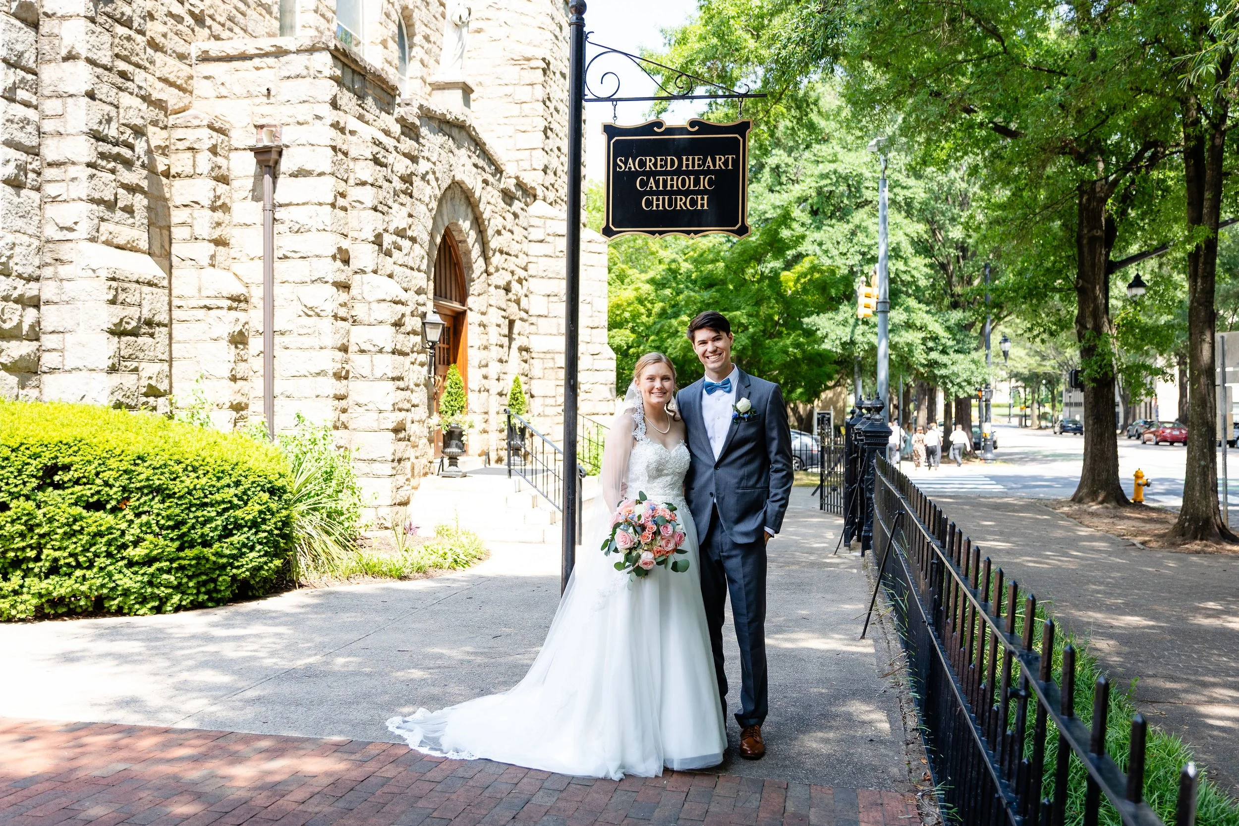 There’s something quietly elegant about a downtown Raleigh wedding—the way historic architecture and city light become part of the story. This wedding at Sacred Heart Church felt exactly like that: sincere, calm, and full of thoughtful moments. Before their ceremony, the couple chose to do a first look at the North Carolina State Capitol, which set the tone for the whole day.